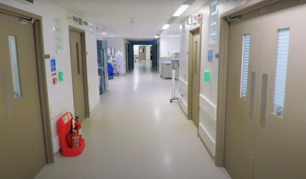 Коридор клиники с медицинским оборудованием